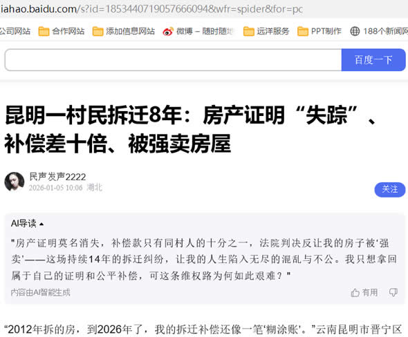 “2012年拆的房,到2026年了,我的拆迁补偿还像一笔‘糊涂账’。”云南昆明市